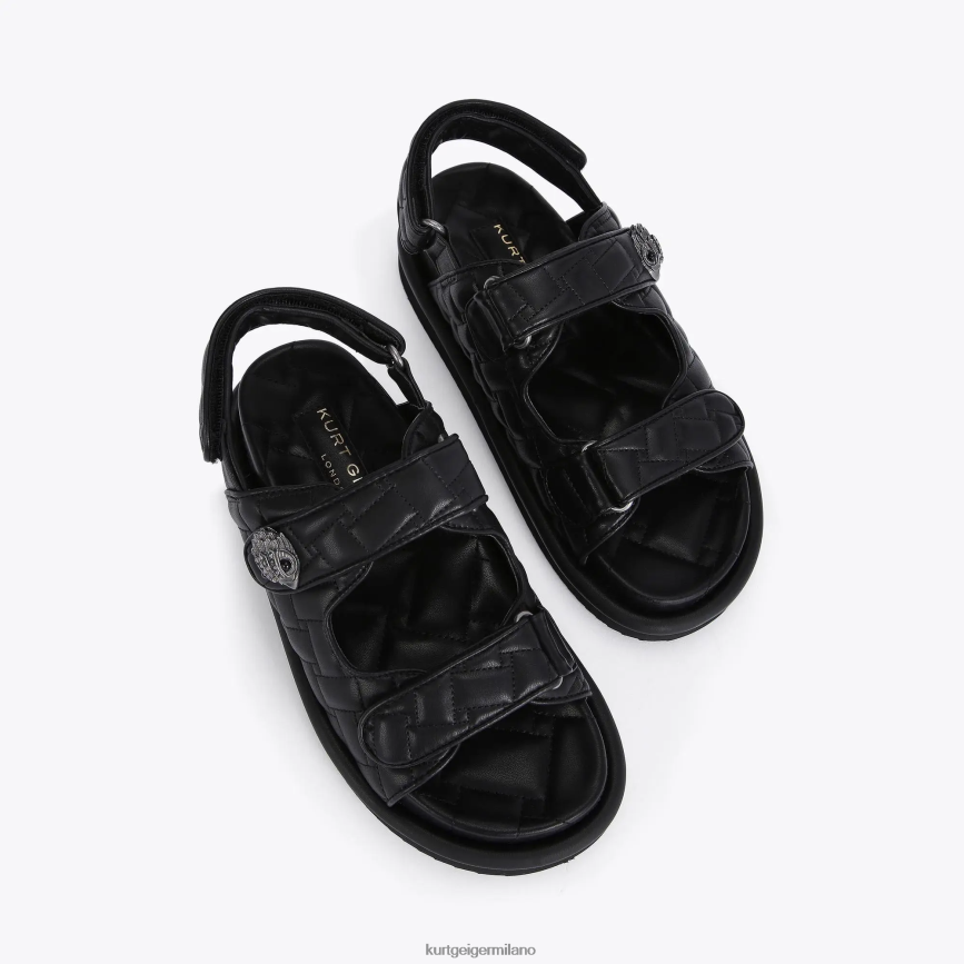 il sandalo orson presenta una tomaia morbida con motivo trapuntato a intreccio. le cinghie sono in velcro con l'emblema della testa di un'aquila in argento anticato posizionato sulla parte superiore.